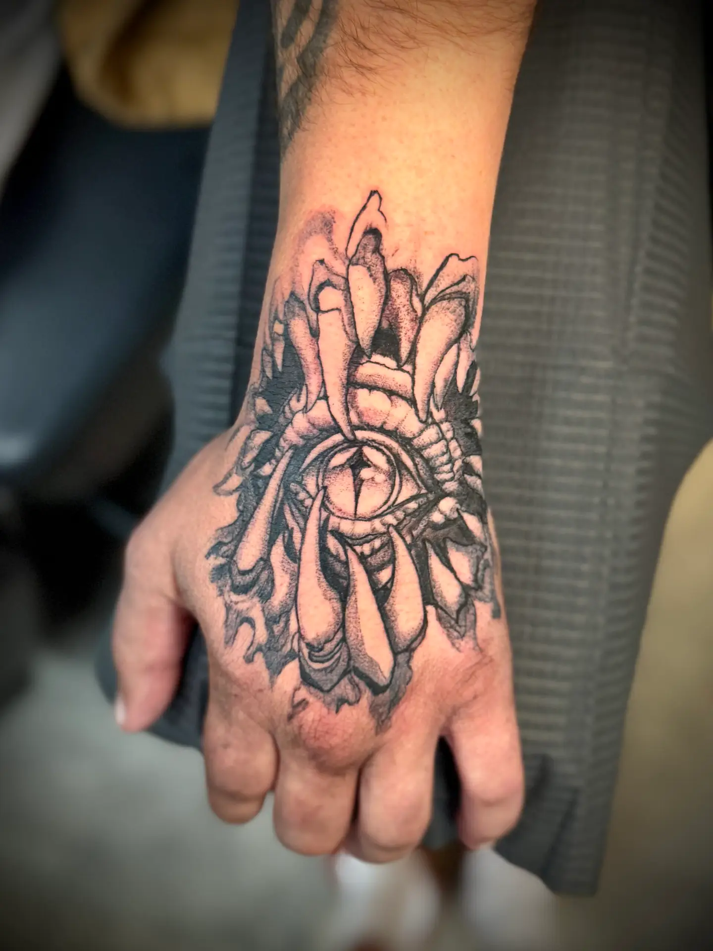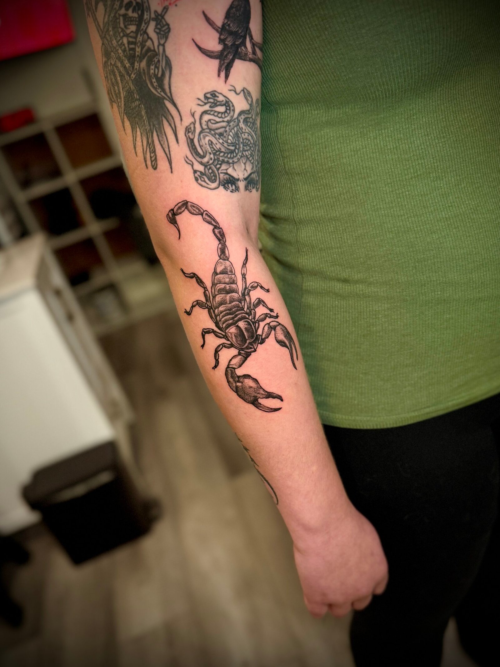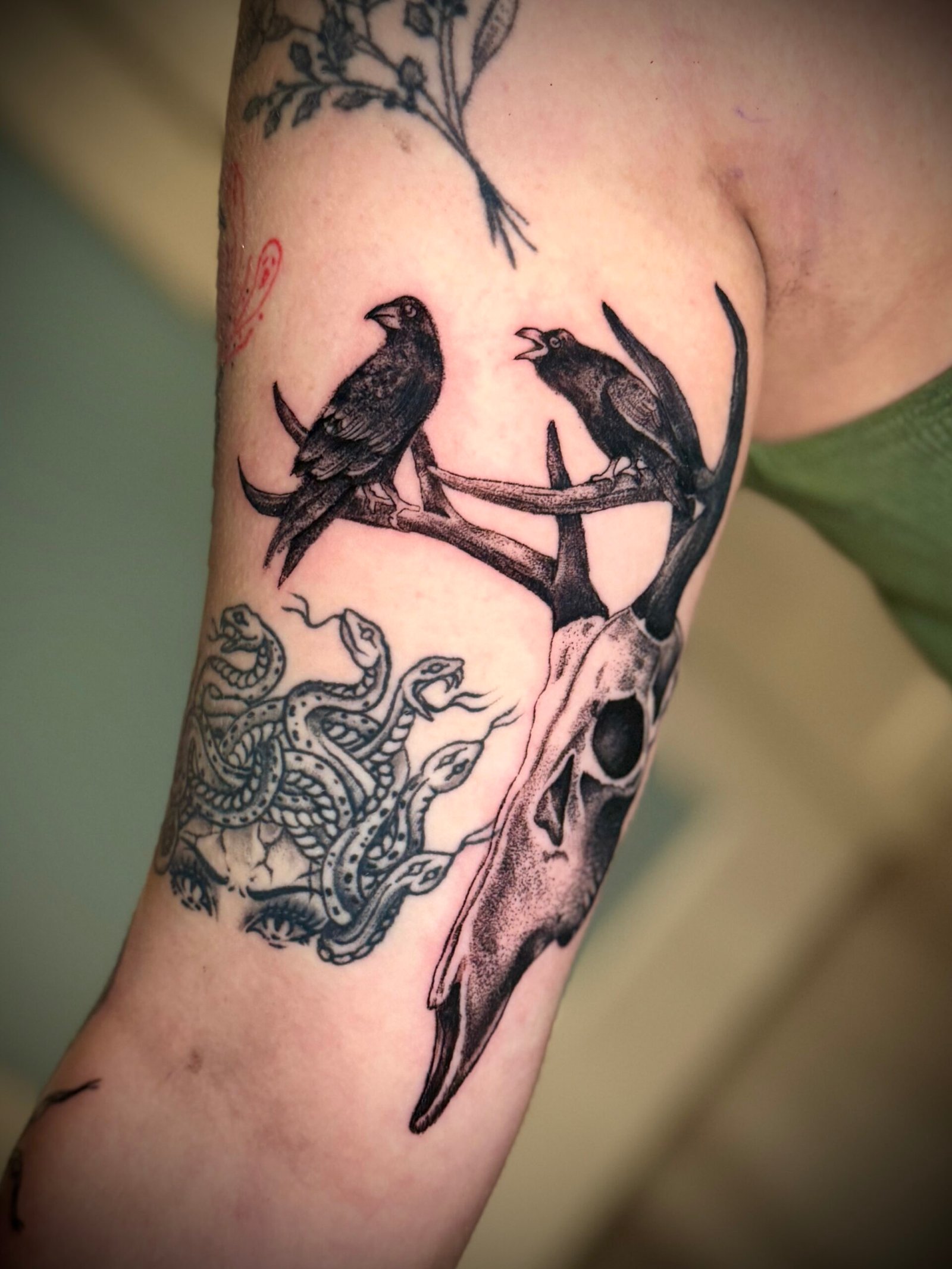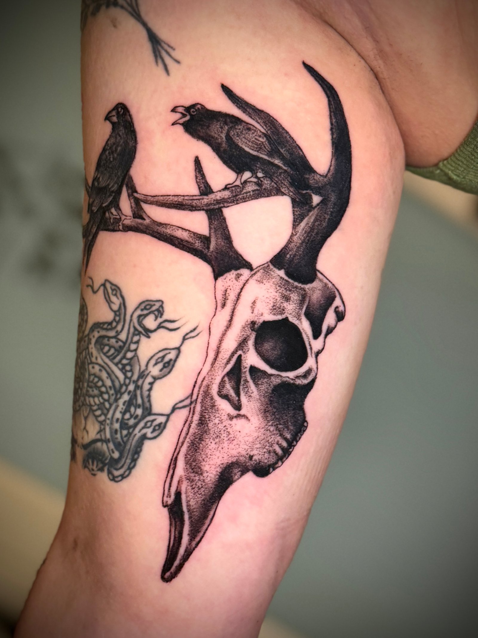 I use a balance of bold blacks, soft greys, pepper shading, and breathable negative space to build depth without losing clarity. Every piece is built to read from across the room, but still reward you with detail up close. I like when tattoos have a pulse — when the lines aren’t machine-perfect, but human and intentional.