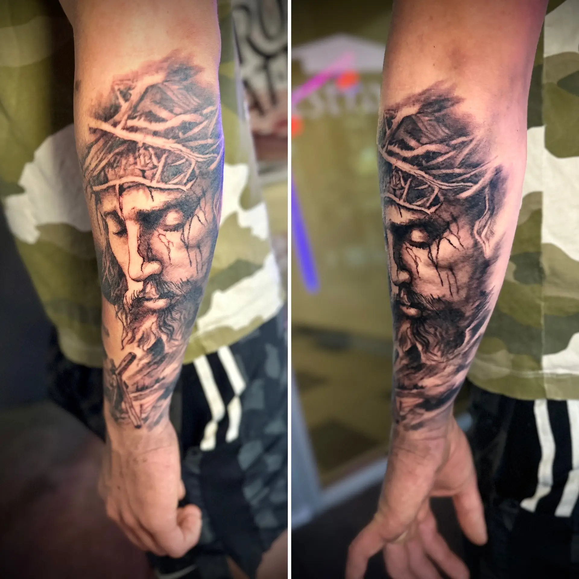 I don’t chase hyper-polished, perfectly airbrushed realism. I admire it in other artists, but that’s not my lane. My style leans into movement, grain, and emotion — the things that make a tattoo feel like it belongs to the body, not printed on it.